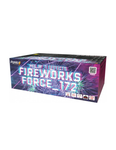 Fireworks Force 172 je složený víceúhlový kompaktní ohňostroj s 172 výstřely a délkou 110 sekund. Uvnitř jsou 4 samostatné ohňostroje propojené do jednoho celku. Skvělá příležitost pro svatby, oslavy a firemní večírky!