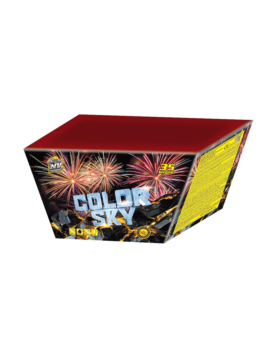 Color Sky 35 ran – efektní kompaktní ohňostroj s 35 výstřely v kalibrech 25mm a 30mm od NV Fireworks. Vějířová střelba zleva doprava s obřím finále 6 ran v salvě. Mnohobarevné efekty pro nezapomenutelnou show. Kategorie F2, prodej od 18 let.